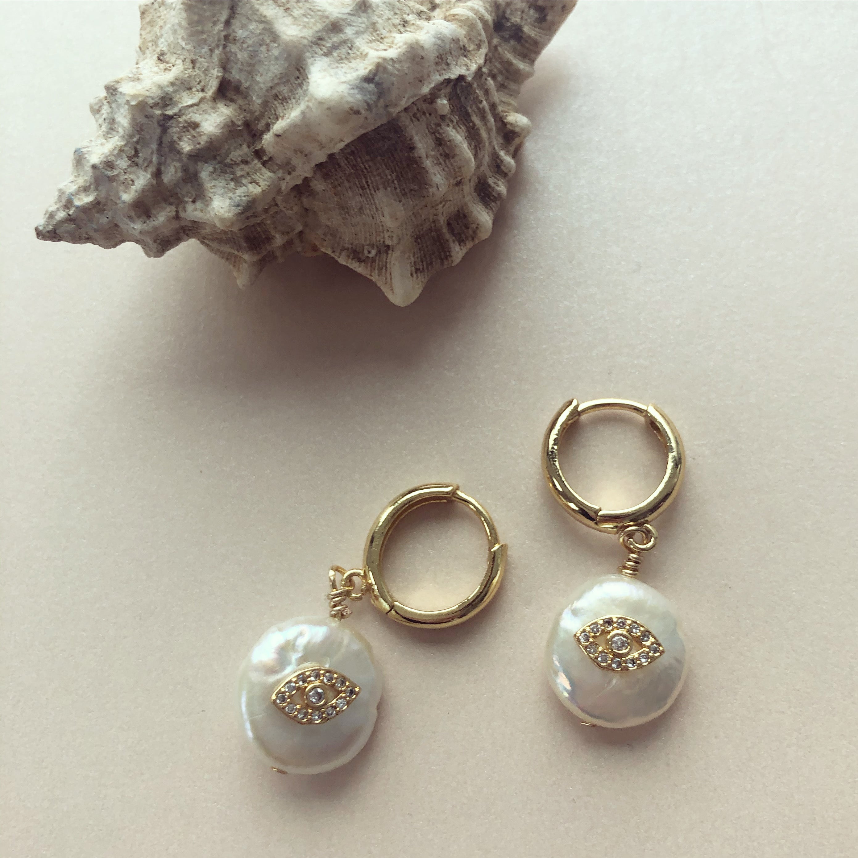 You gotta' protect your energy, babe - and what better way to do so than in these genuine freshwater pearl earring with evil eye decals?